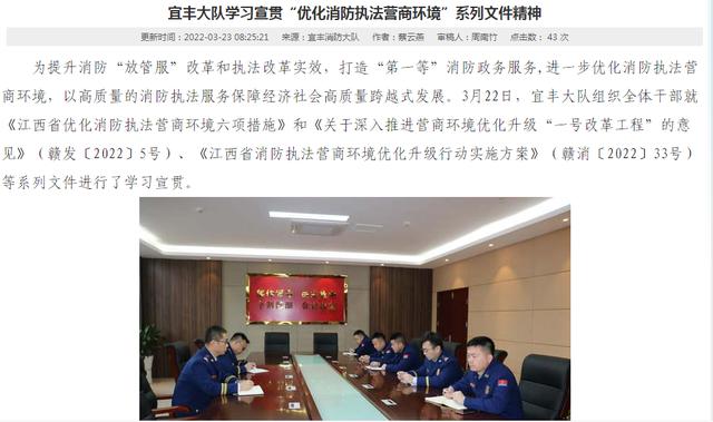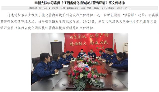 會議結(jié)束后,各地先后組織學(xué)習(xí)宣貫《江西省優(yōu)化消防執(zhí)法營商環(huán)境六項措施》系列文件精神。